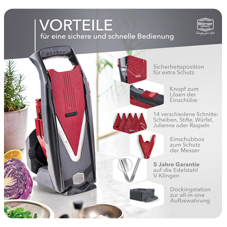 رنده برنر آلمان مدل ویتال 13 کاره اصل Borner برخلاف مدل V6 که بدنه‌ای از جنس استیل داشت، دارای بدنه‌ای از پلاستیک فشرده مقاوم و مستحکم است؛ جنسی سبک اما فوق‌العاده بادوام که در برابر ضربه، فشار و رطوبت کاملاً مقاوم بوده و برای استفاده طولانی‌مدت گزینه‌ای ایده‌آل به شمار می‌رود. در کنار این بدنه باکیفیت، تیغه‌های ضد زنگ و بسیار تیز این رنده به شما کمک می‌کنند انواع سبزیجات، میوه‌ها، صیفی‌جات و حتی پنیر و شکلات را به راحتی رنده، ورقه، رشته و پوره کنید.