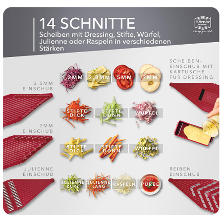 رنده برنر آلمان مدل ویتال 13 کاره اصل Borner قدرتمند نه‌تنها برای مصرف خانگی حرفه‌ای، بلکه برای کاربردهای صنعتی، تولیدی‌ها، فست‌فودها، رستوران‌ها و آشپزخانه‌های حرفه‌ای نیز کاملاً مناسب است. سرعت بالا، یکنواختی برش‌ها و ایمنی طراحی شده در این مدل، باعث می‌شود در محیط‌های کاری پرحجم هم بتوان روی آن حساب کرد.