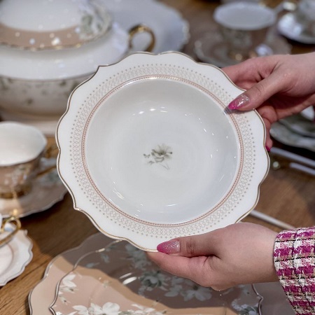 یکی از مهمترین مزیتهای سرویس پذیرایی 6 نفره برند KitchenArt مدل Pink، جنس خاص آن است. این سرویس از چینی بنچاینا (Bone China) ساخته شده است؛ متریالی بسیار مرغوب که از ترکیب پودر استخوان در ساخت آن استفاده میشود. این ویژگی باعث میشود ظروف با وجود ظرافت ظاهری، استحکام بالایی داشته باشند، سبکتر از ظروف چینی معمولی باشند و در عین حال جلوهای بسیار لطیف، درخشان و لوکس به میز پذیرایی شما بدهند. بنچاینا یکی از باکیفیتترین متریالها در صنعت ظروف پذیرایی دنیاست و همین موضوع ارزش این محصول را چندین برابر میکند.